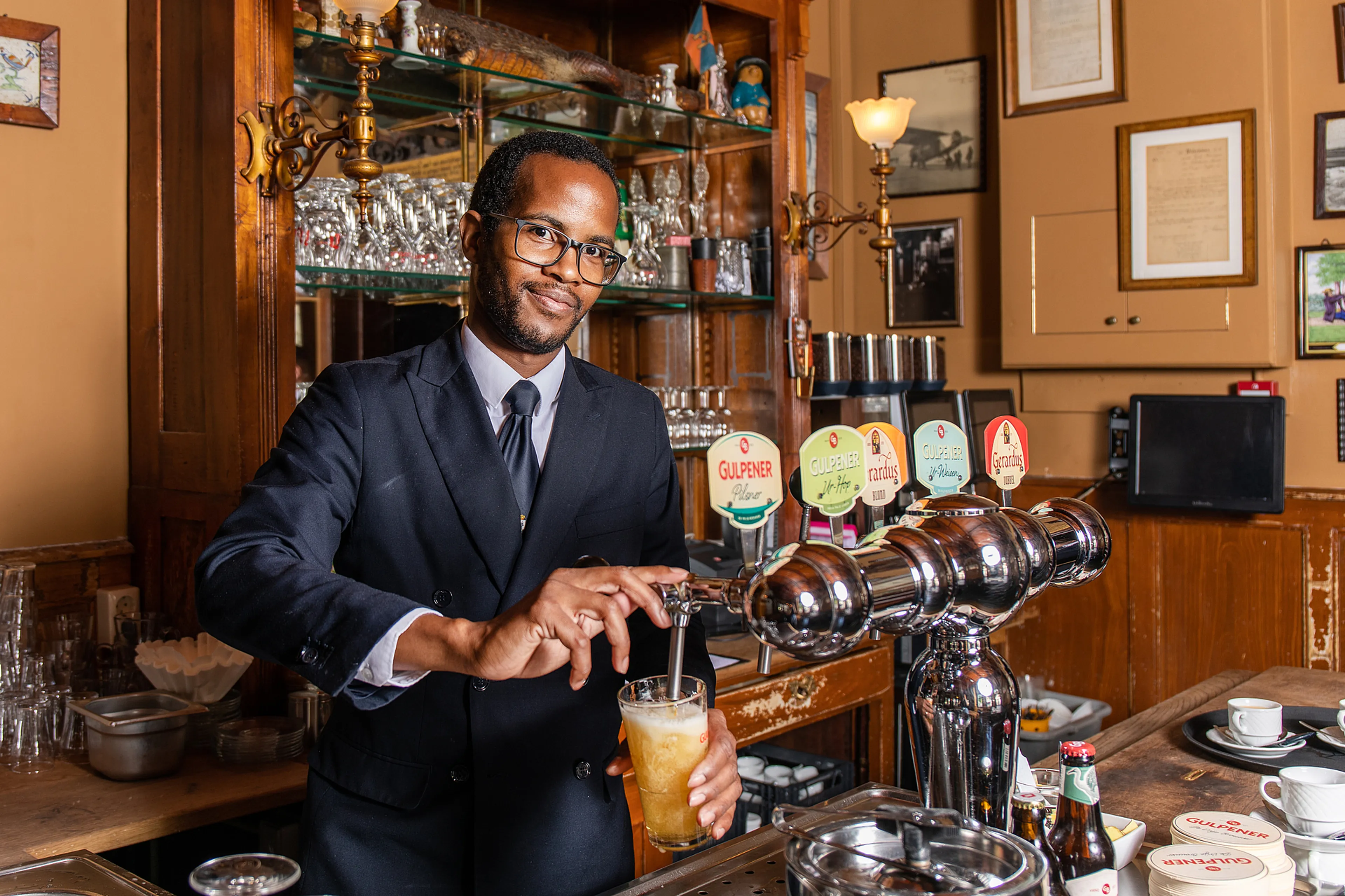 De geboren Curaçaoër heeft van het klassieke hotel moeten leren houden, bekent hij. “Ik kwam rond mijn twintigste naar Nederland om de Hogere Hotelschool in Leeuwarden te gaan doen. Via via kwam ik bij Van der Werff terecht als weekendkracht. Ik dacht wel even: ‘Woow, wat is dit?’ In die tijd hield ik meer van strak en modern en van nieuwe snufjes. Maar de gemoedelijkheid van dit hotel ging ik steeds meer waarderen. Zeker oudere gasten halen hier hun hart op. Dit vind je nergens meer, zeggen ze.”