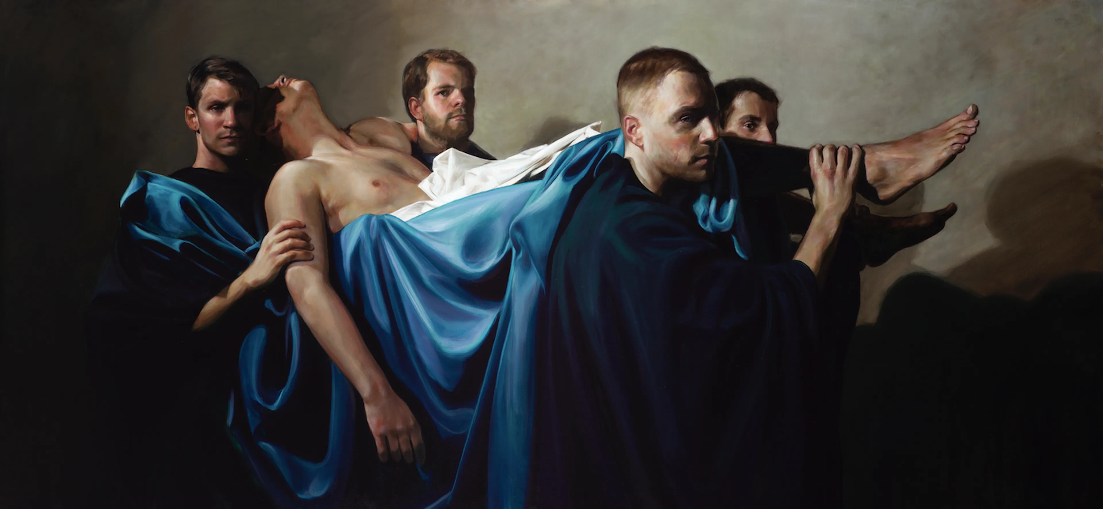 Er zit ook iets van zwaarte in. Ik heb zelf ook het idee dat er een bepaalde zwaarte aan het leven hangt. Dat wil ik in mijn schilderijen benadrukken. Het gaat juist om die persoon die niet zo ‘gelukt’ is, de slappeling. Dat is wat ik zo mooi vind aan het geloof, dat de arme stakkers centraal staan.’
