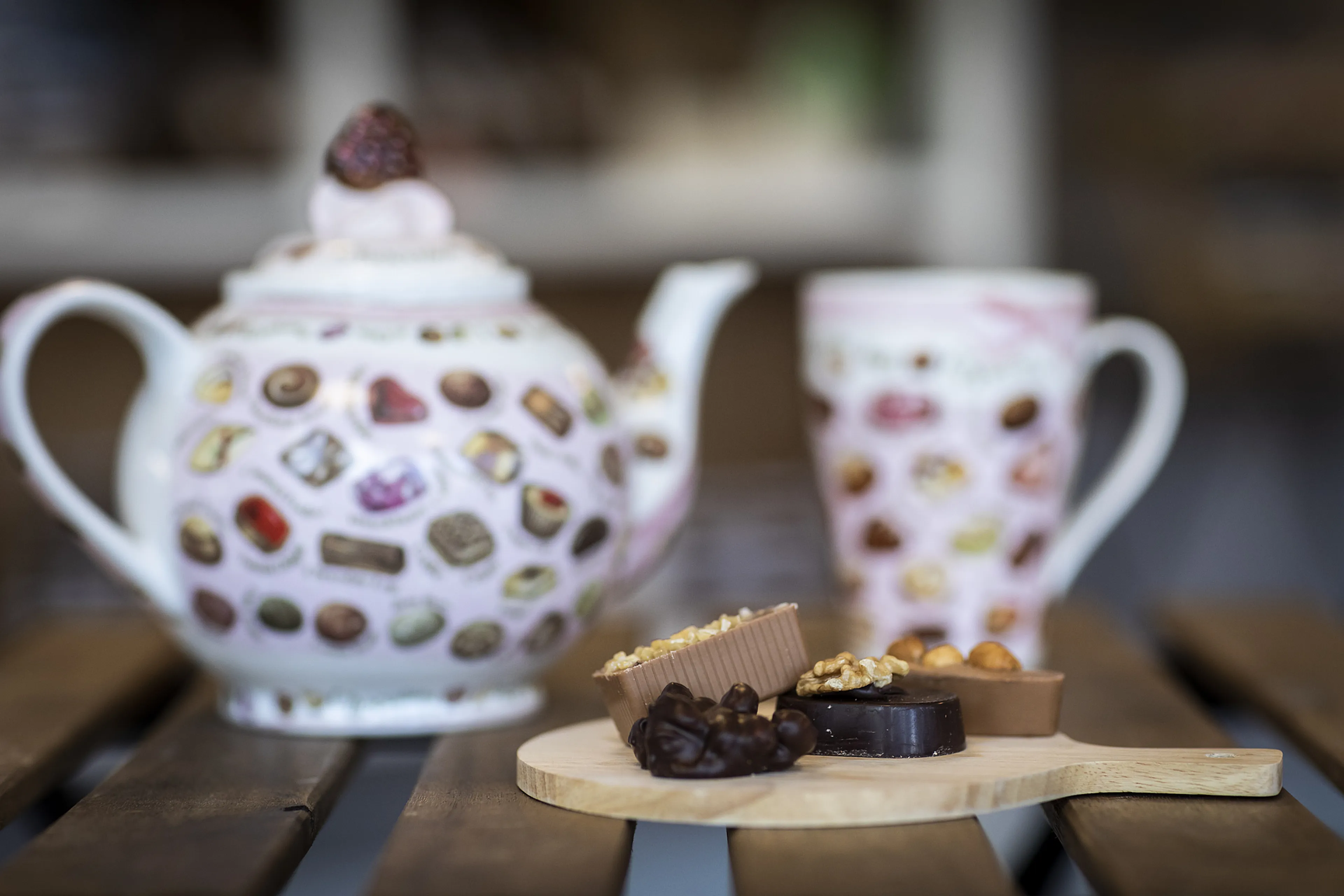 Een terras heeft Elma niet, maar je kunt er wel langs de gevel zitten. En binnen schenkt ze ook koffie of thee. “Kijk, wat dacht je van een pot thee met een bonbonplankje? Dat is weer eens wat anders dan kaas.”