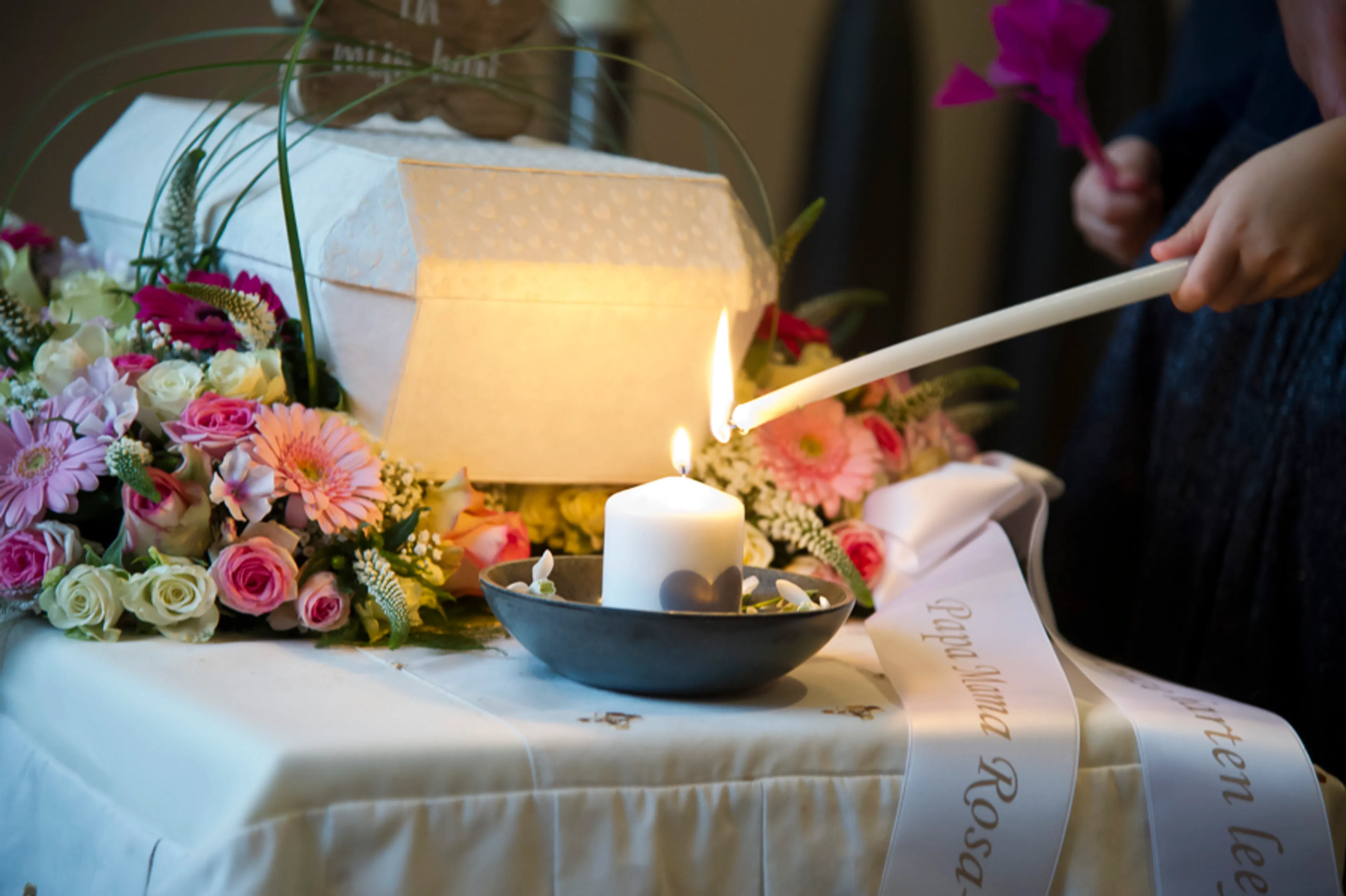 “De laatste avond ben ik alleen met Féline geweest. Ik was nog steeds een kraamvrouw, maar dan zonder baby. Je wordt zo geleefd in die tijd, dit was een mooie mogelijkheid om afscheid te nemen. De dag van de crematie hebben we Féline in een doek gewikkeld en haar in het kistje mee naar huis genomen. Mijn dochter wilde haar graag haar kamer laten zien, en we hebben samen aan de eettafel een broodje gegeten.