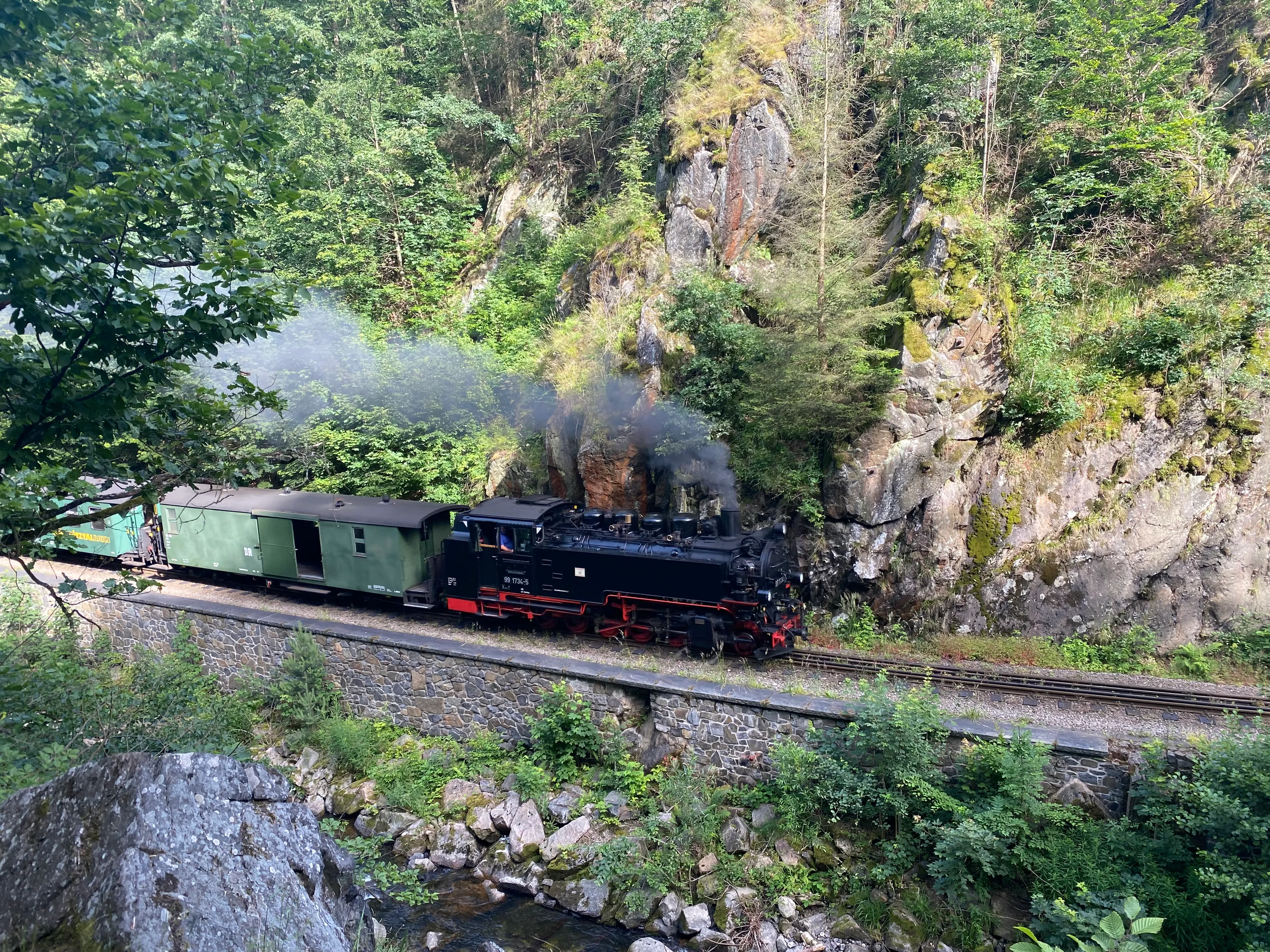 "De tweede route maken we met een stoomtrein van bijna een eeuw oud", vertelt Joanne. "De machinist en stoker zijn voor het vertrek al uren in touw om de locomotief klaar te stomen voor de reis." Gerben: "De Weisseritzbahn is trots op het feit dat dit de oudste smalspoorlijn in Duitsland is die nog volgens een vaste dagelijkse dienstregeling rijdt."