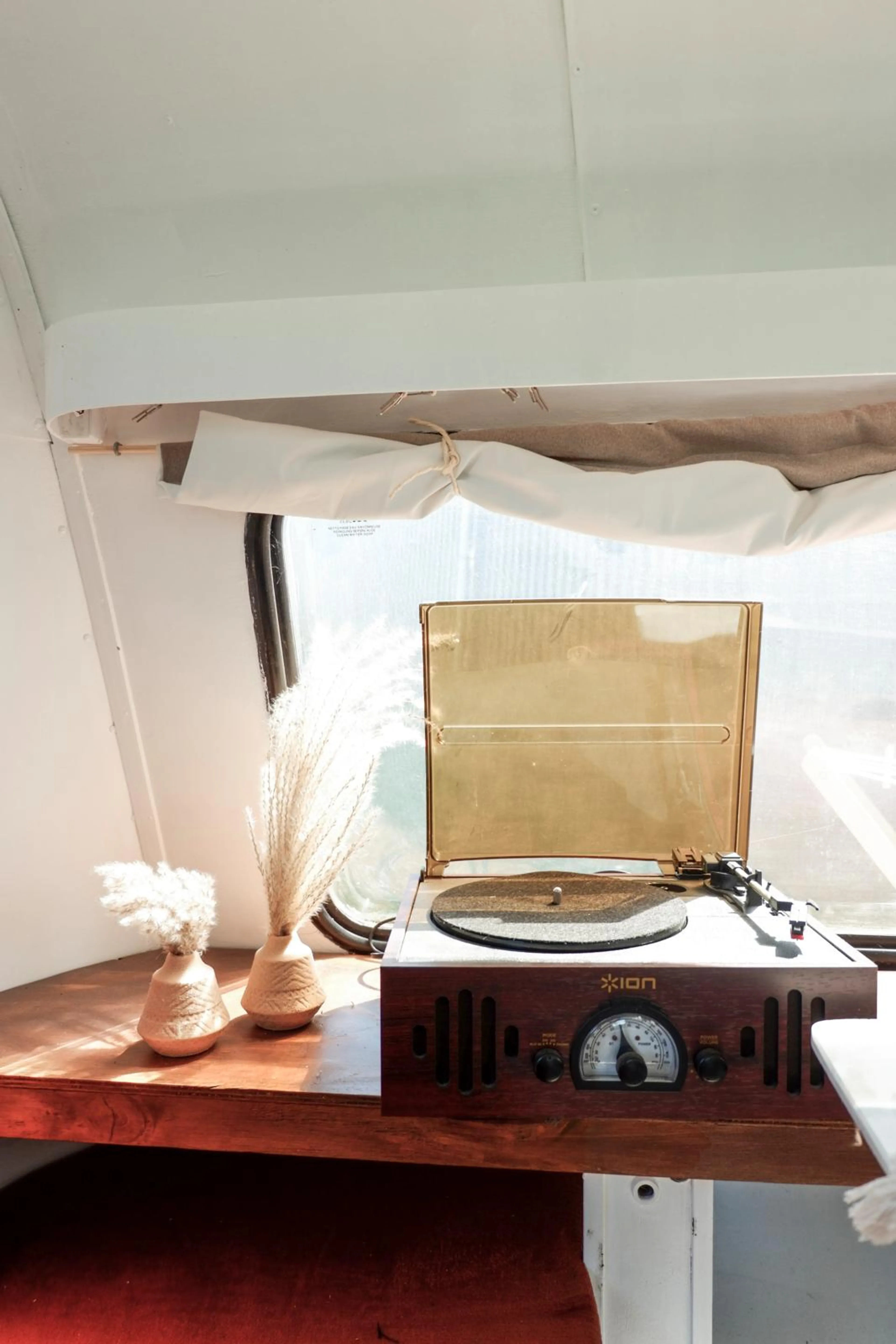 Na twee maanden klussen in avonden en weekenden, was de caravan klaar. “Het is heel mooi geworden. De inrichting is een beetje Scandinavisch, met een witte basis, terra tinten, veel rotan en een mooie visgraatvloer. Er zit zelfs een klein barretje in. Mijn vader en ik hebben samen een bedrijf waarmee we decoraties voor bruiloften verhuren en bruiloften stylen. We wilden de caravan ook gebruiken voor festivalbruiloften, bijvoorbeeld als honeymoonsuite. Door corona is dat nu nog niet gebeurd.”