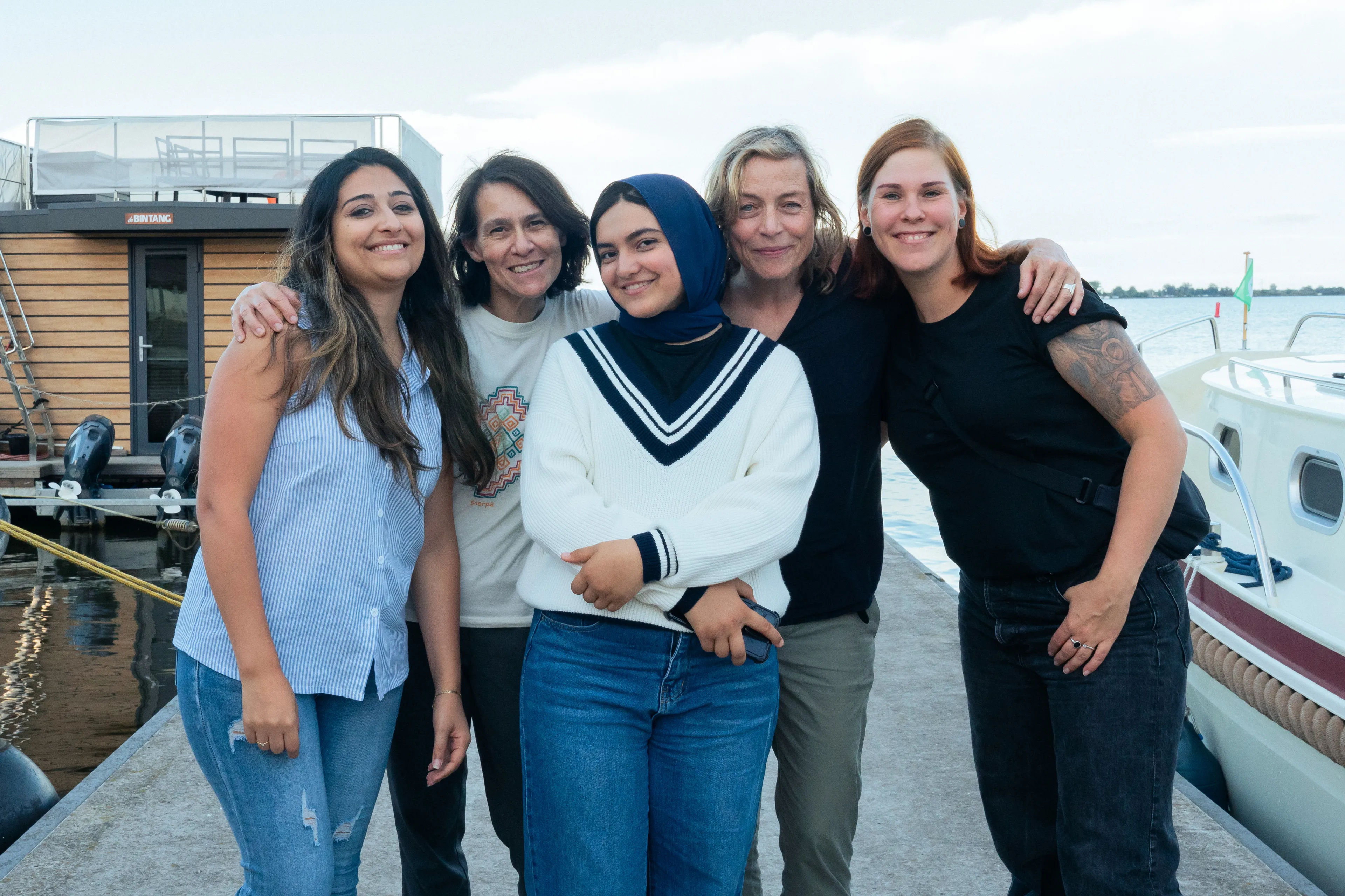Foto v.l.n.r.: Batoul Karbijha (regie), Claire Pijman (DOP), Zenat Janat Gul, Susanne Helmer (geluid), Janien Kommer (gaffer)