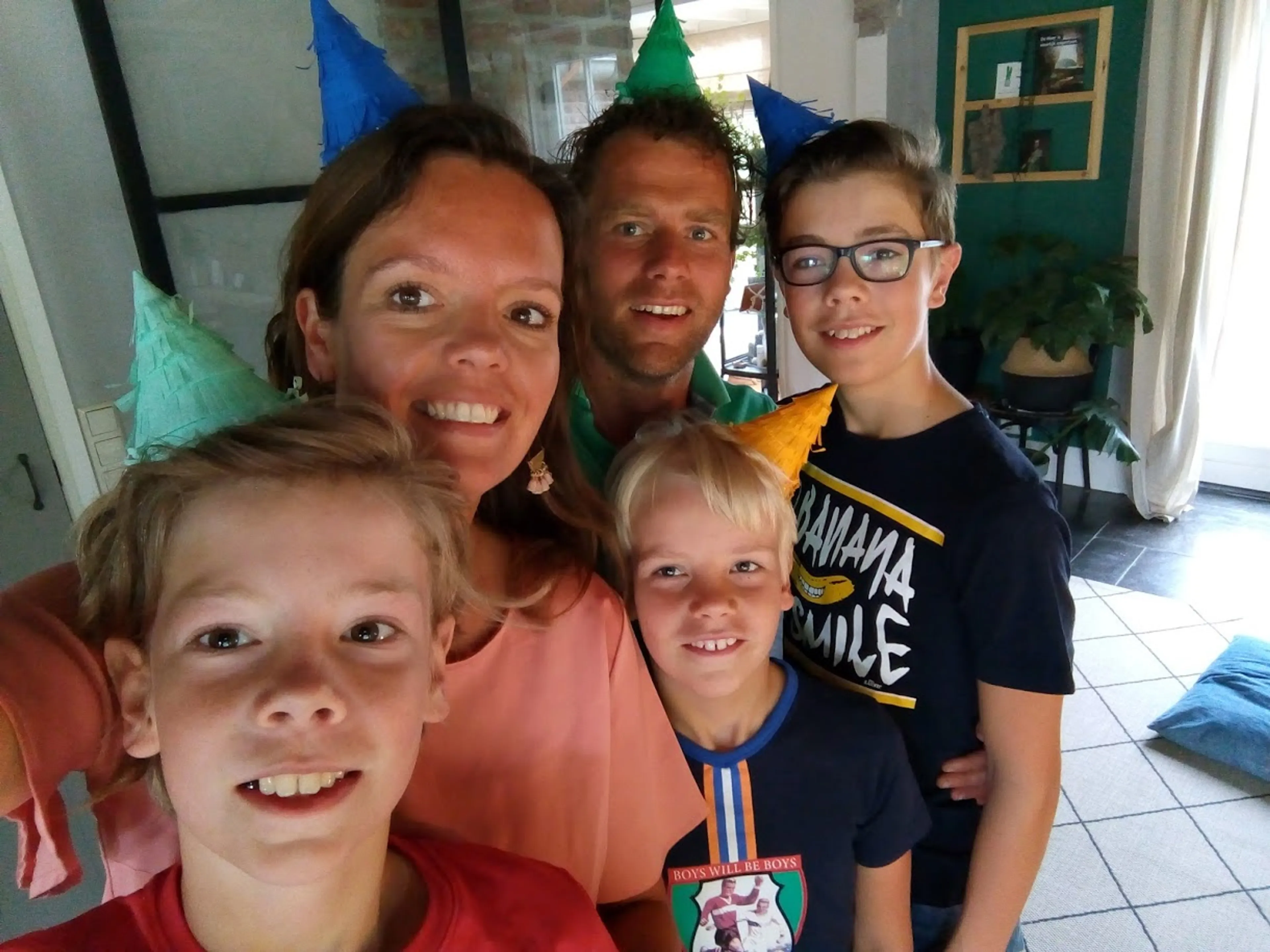 “Dit zijn wij. Ons gezin. Toen nog compleet. Tot op 28 februari 2021 ons hele leven op z’n kop kwam te staan. Op die dag is onze lieve David (10 jaar, midden op de foto) door een ongeluk naar de Heere Jezus is gegaan."