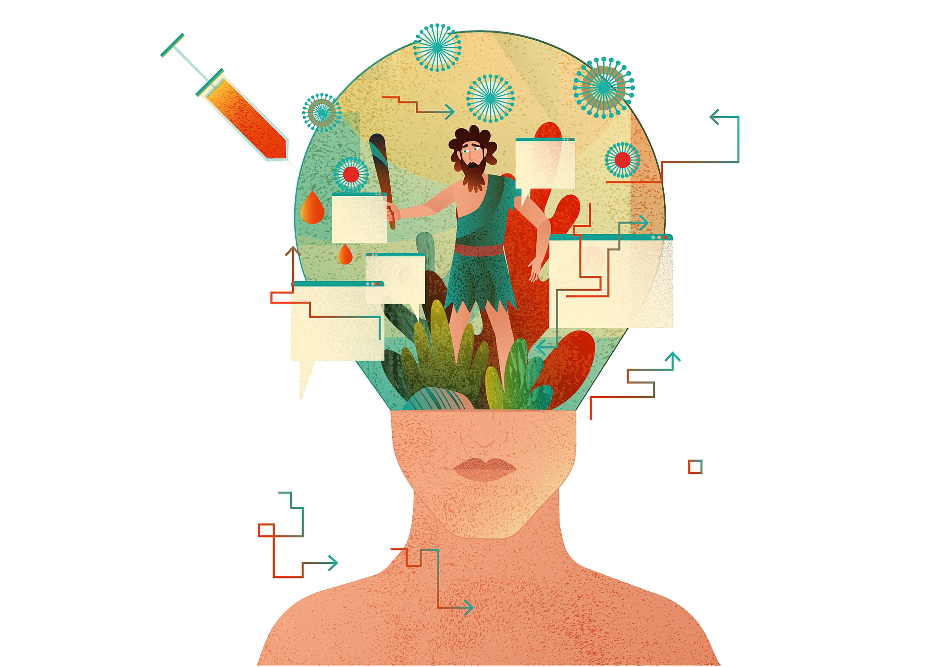 Maar ja, met onze oertijd-breinen wonen we nu in de moderne tijd en zitten we op internet. Daar zijn we niet op gebouwd. Internet maakt eigenlijk dat we extra zintuigen hebben gekregen, waardoor we als het ware ook de knisperingen horen van alle dorpen in onze omgeving en daarop moeten reageren. Elk bericht is een nieuw potentieel gevaar waardoor we weer in de vlucht- of vechtstand springen. ‘Het valt hoogstwaarschijnlijk mee, maar het zou kunnen...’ Net als dat gekke geluid dat we vroeger ergens in het donker hoorden. Natuurlijk, dikke kans dat het niks is. Alleen wat als het een monster is?