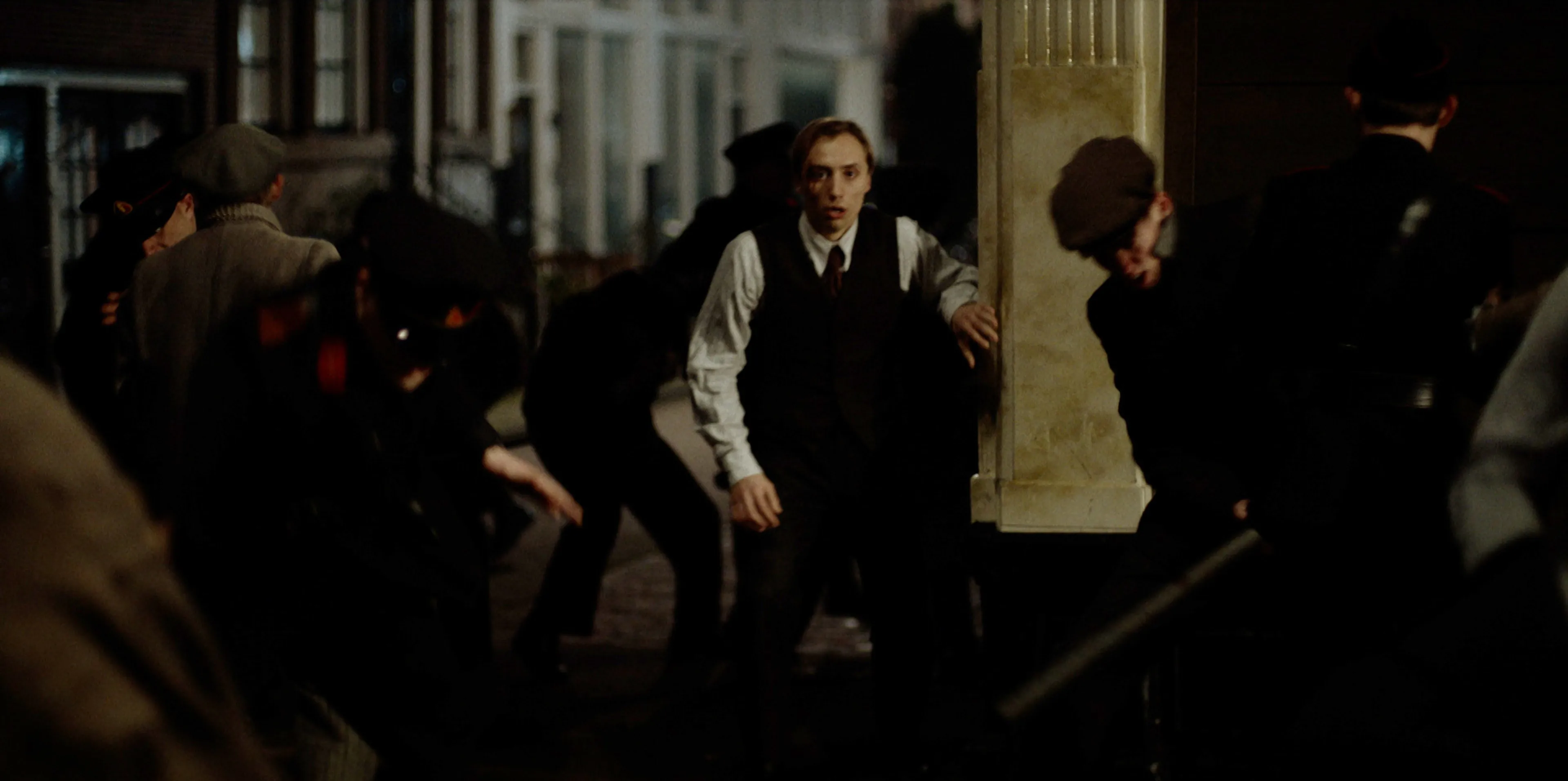 De inval bij het café (opgenomen bij locatie 1) mondt uit op een knokpartij tussen de Joodse arbeiders en WA’ers. Emiel en Rebecca zijn in dit geval op het verkeerde moment op de verkeerde plek. De knokpartij is op deze locatie opgenomen.