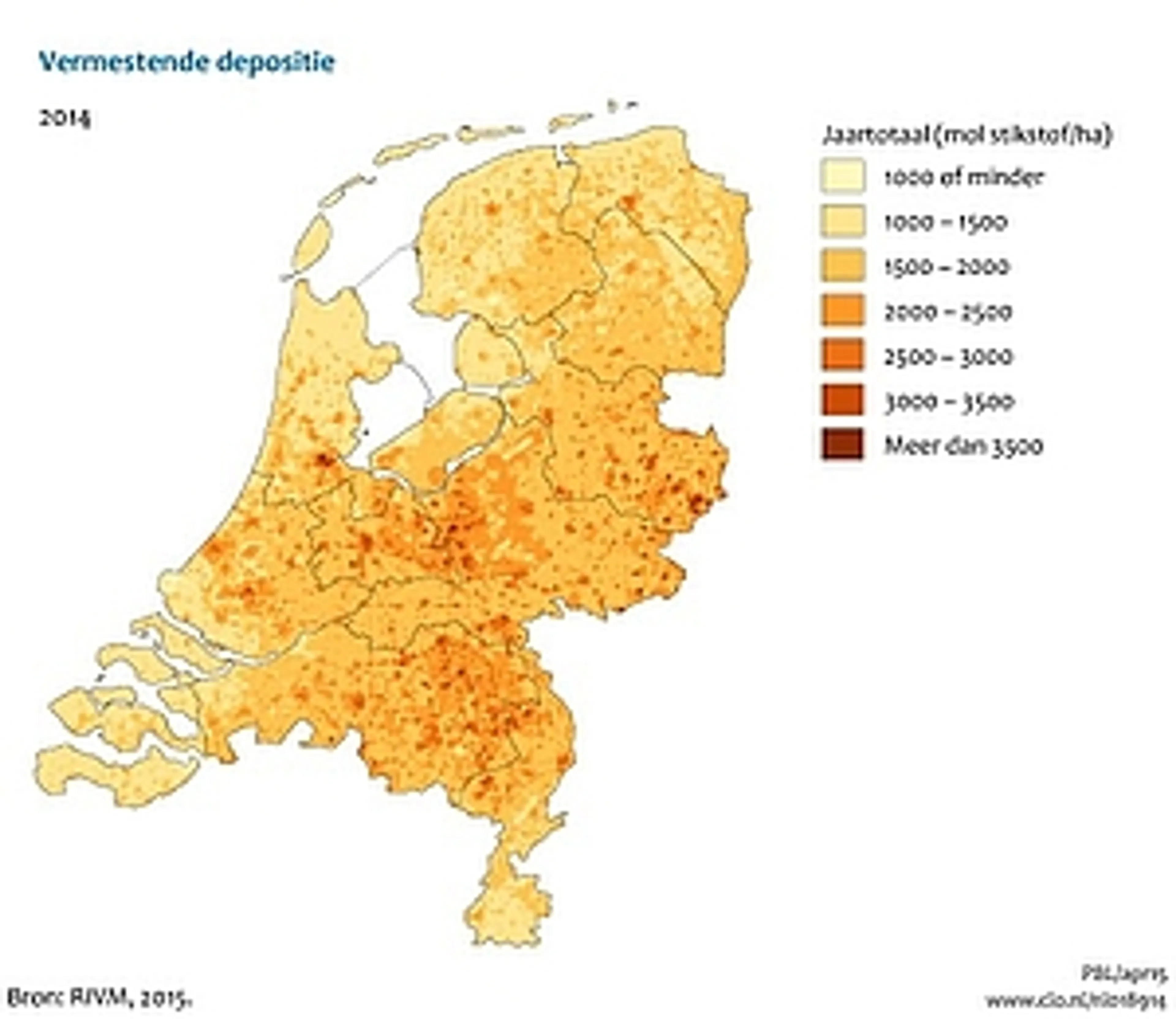 Stikstofoxide komt vooral van het wegverkeer (uitstoot), industrie en huishoudens (gasverwarming) en klein beetje uit de luchtvaart. Ammoniak komt van de veeteelt. Vooral de menging van poep en plas (drijfmest) is funest, dan ontstaat ammoniak. Dat gebeurt vooral in stallen, koeien die buiten lopen veroorzaken dit niet of nauwelijks.