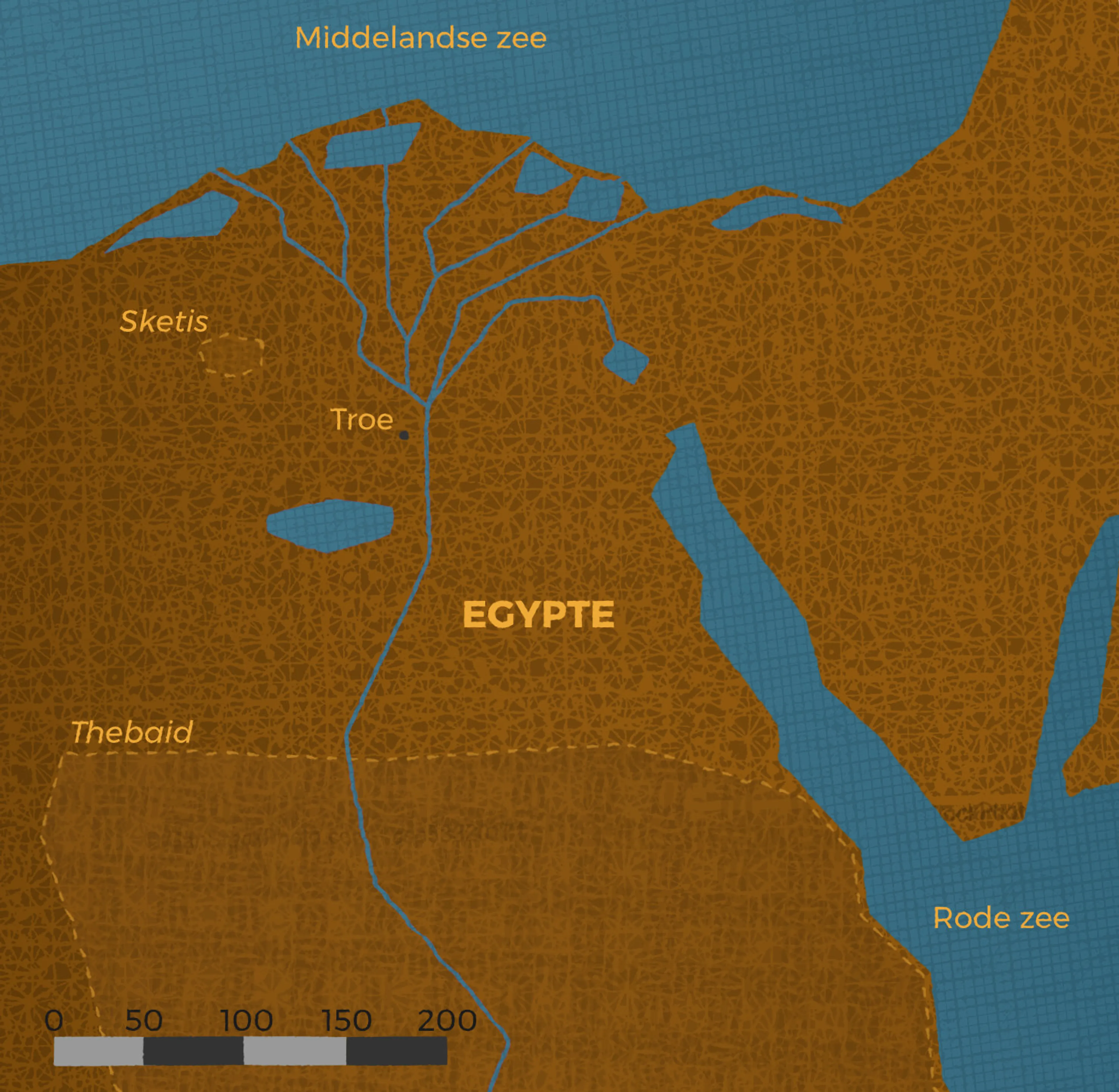 Agathoon ziet zichzelf ook als vreemdeling. Op weg met God, net zoals Abram. Niet gehecht aan plaats, bezittingen of wat dan ook. Volledig vertrouwend op Gods stem. Dan komt Agathoon een buitenlander tegen, een vreemdeling, die nog ziek is ook. Het is een bijzondere ontmoeting tussen twee soorten vreemdelingen. De ene vreemdeling is ziek blijven steken, de ander is onderweg.