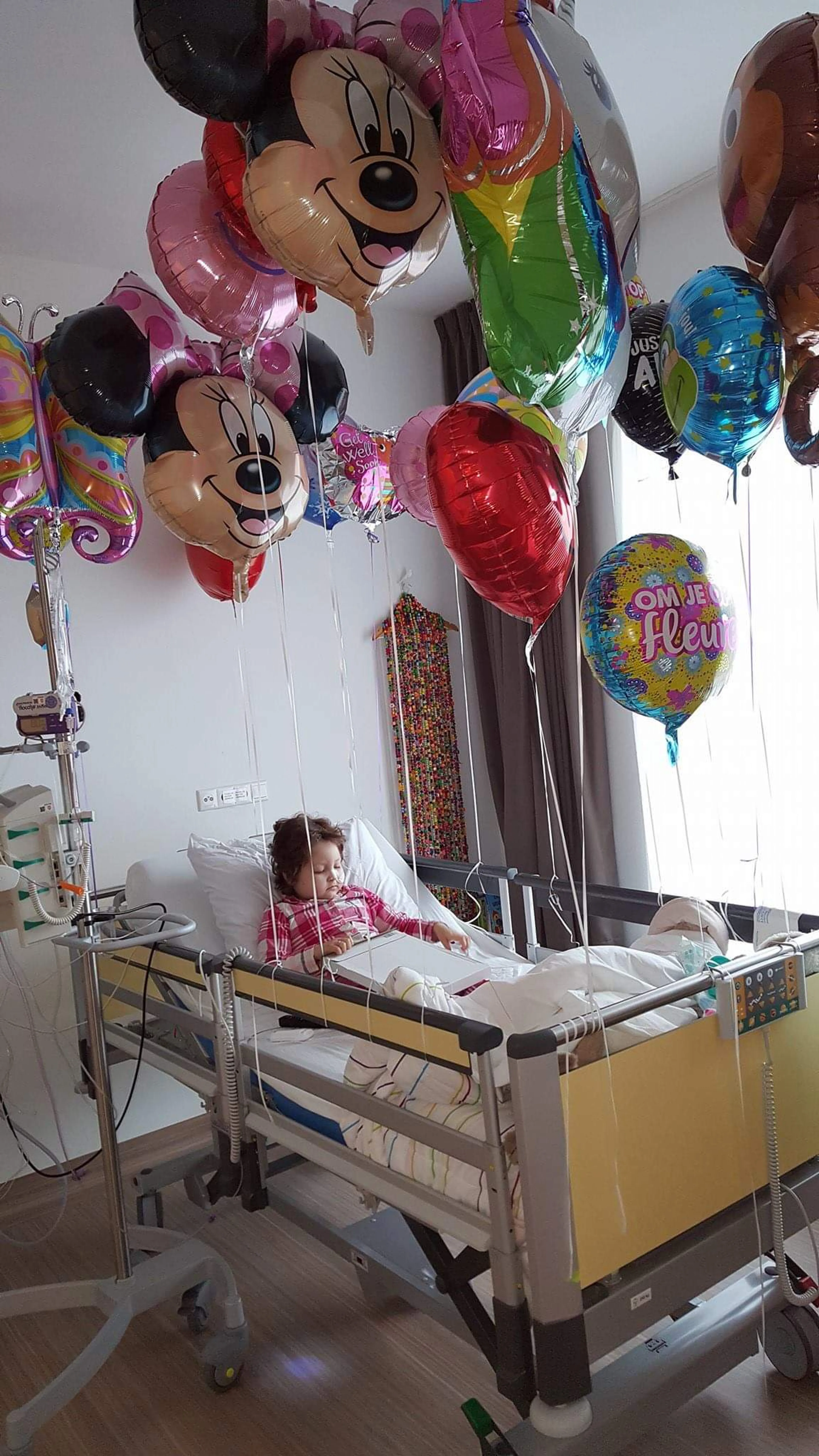 “Het was 8 februari 2013. Een dag die ik nooit meer zal vergeten, want toen ik Phéline s’morgens verschoonde zag ik op haar benen ruim 200 kleine puntbloedinkjes zitten. Dat was zo ongeveer het laatste symptoom wat nog ontbrak aan de lange rij van symptomen die bij leukemie hoorden en die ik in de weken daarvoor al bij haar had opgemerkt. Naast dat zij zo vaak ziek was, had ik de laatste dagen ook onverklaarbare blauwe plekken op haar lichaam zien verschijnen. Iets wat niet normaal was, aangezien zij al een aantal dagen ziek in bed lag. Ik belde opnieuw naar de huisarts, maar er werd geadviseerd om het nog een weekend aan te kijken. Om gek van te worden! Ik wist gewoon zeker dat er iets heel ergs met Phéline aan de hand was. Tegen mijn gewoonte in, heb ik geëist dat Phéline nog diezelfde dag verder onderzocht zou worden. Ik geloof dat ik mijn wanhoop goed heb overgebracht, want ik werd na al die weken eindelijk serieus genomen. Het bloed van Phéline werd meteen onderzocht."