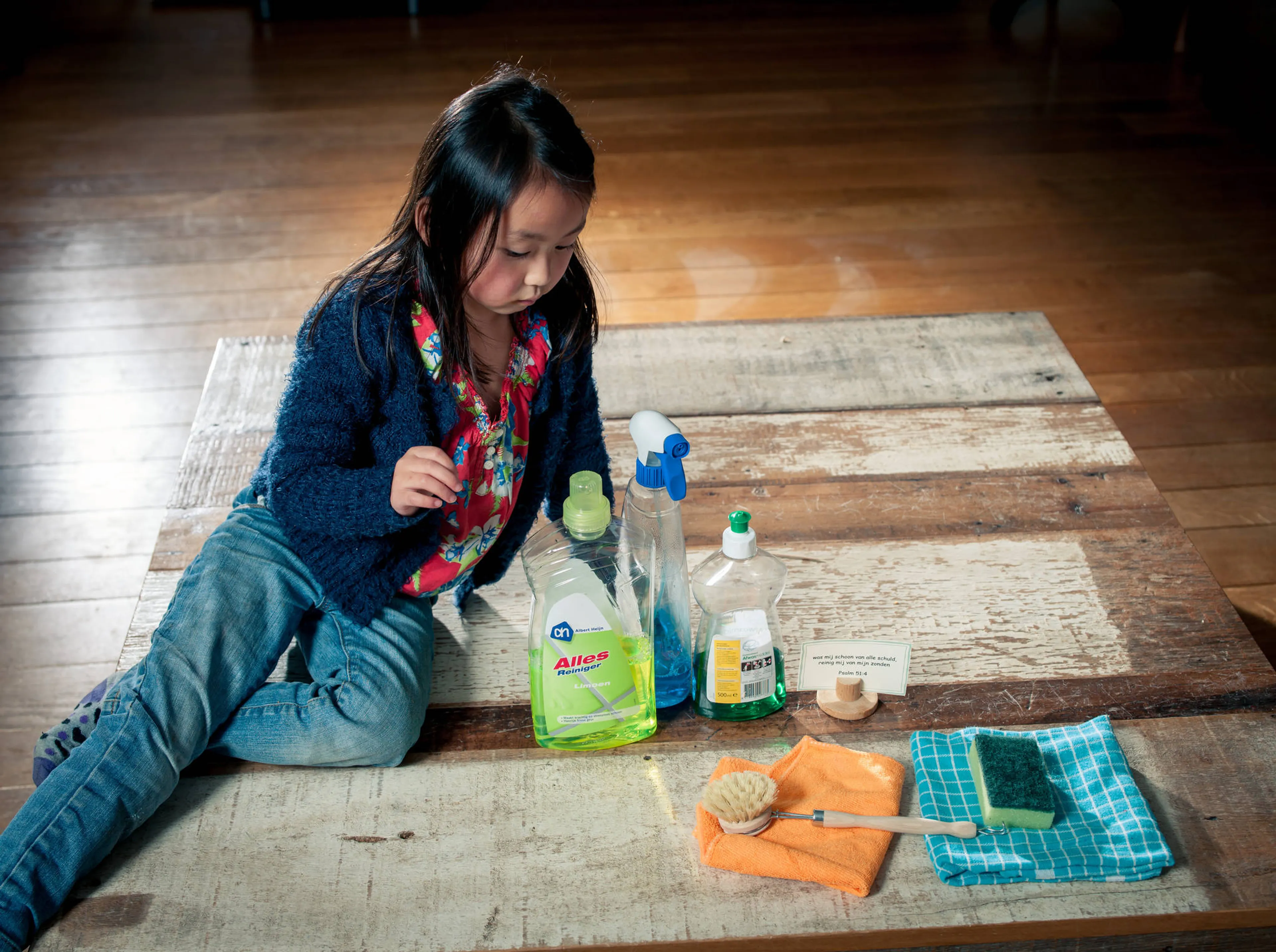 Johanna: “Deze tafel is door zijn eenvoud heel duidelijk. De tekst komt uit Psalm 51:4: ‘Was mij schoon van alle schuld, reinig mij van mijn zonden.’ Dat beeld je uit met schoonmaakmiddelen of zeep en shampoo. Je kunt ook met jonge kinderen samen aan de schoonmaak gaan (auto wassen, ramen zemen) en er zo samen van doordrongen raken hoe mooi iets is als het weer schoon is.” (vanaf ongeveer 4 jaar)