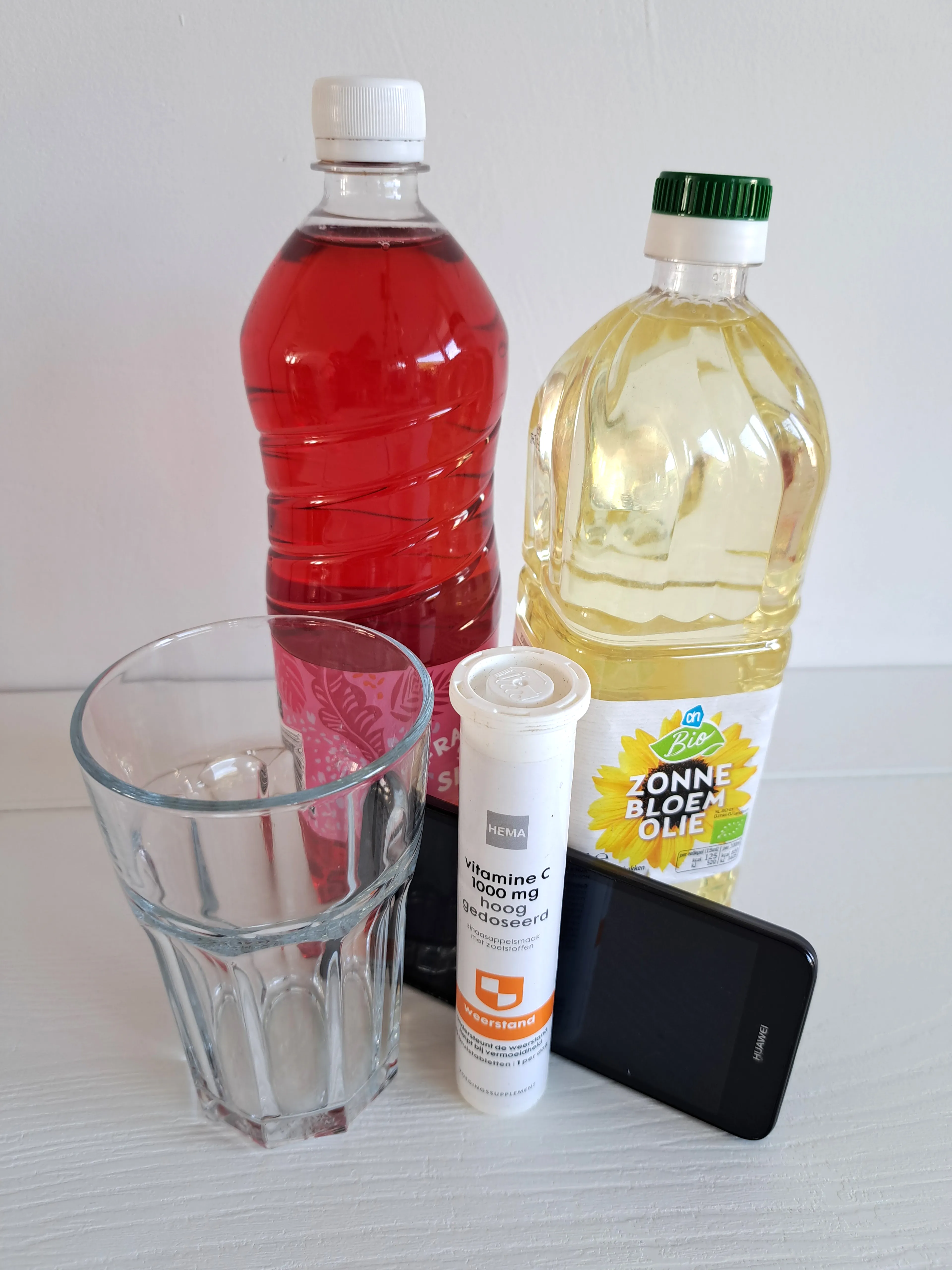 • groot glas/plastic fles