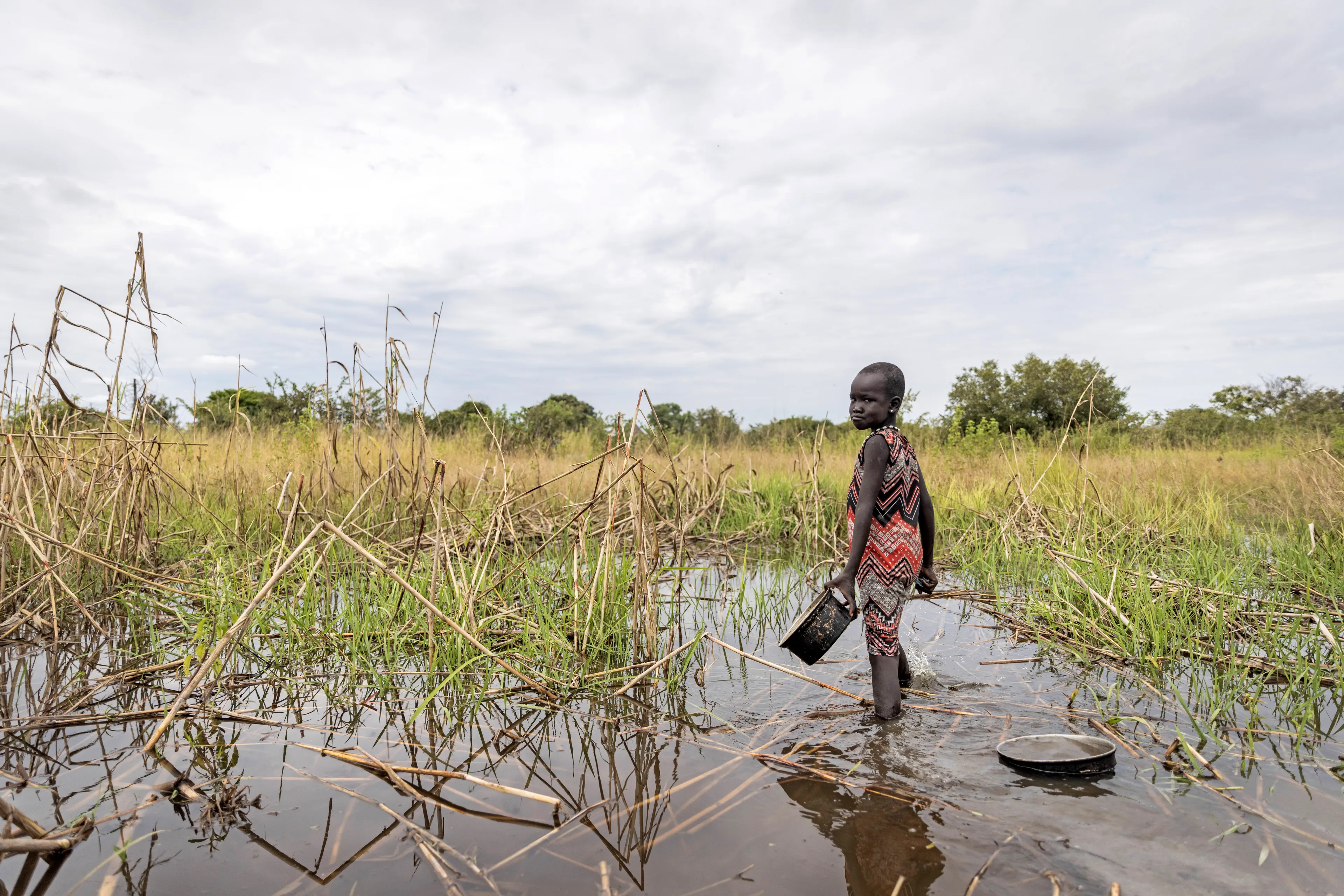 Zuid-Soedan, een van de armste landen ter wereld, kent een lange geschiedenis van conflicten en geweld. Tot overmaat van ramp staat het land volgens experts nu ook aan de frontlinie van de klimaatcrisis: extreem weer leidde in 2022 – net als in de drie jaar ervoor – tot verwoestende overstromingen, waar maar liefst twee derde van Zuid-Soedan mee te maken heeft – ook vanwege extreme neerslag in naburige landen, want Zuid-Soedan ligt laag. Medio oktober meldden de Verenigde Naties dat 900.000 mensen hierdoor zijn getroffen. Omdat zeer veel landbouwgrond onder water is komen te staan, lijden velen opnieuw honger. Volgens de VN gaat het om zo’n 65 procent van de bevolking: pakweg 7,75 miljoen mensen. Bijna drie miljoen van hen leven volgens diezelfde VN al “op de rand van verhongering”.