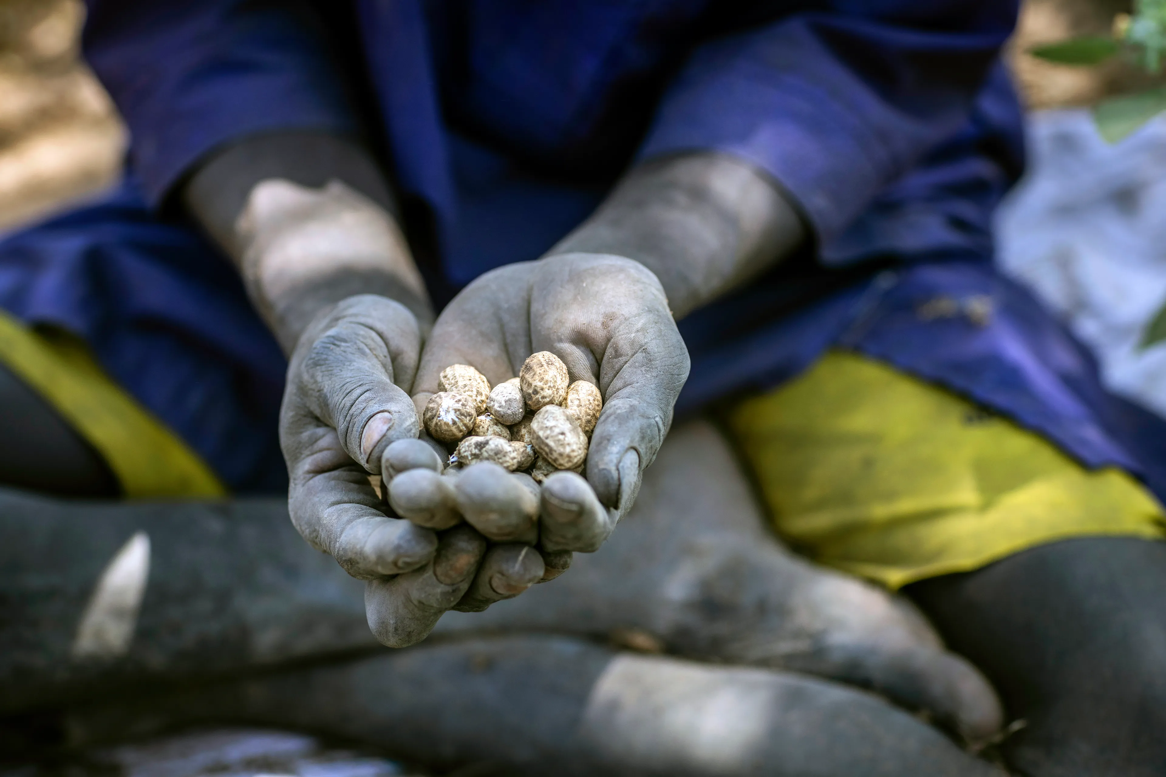 Hij neemt ons mee naar de tent van Mary. Ook zij heeft geen idee hoe oud ze is. “We tellen onze jaren niet, alleen de kinderen die we krijgen”, zegt ze. “Misschien ben ik 40?” Haar man was rond de 60 toen hij, tijdens de burgeroorlog van 2016, werd vermoord terwijl hij op het land aan het werk was. “Zomaar. Met mijn kinderen ben ik hierheen gevlucht: één dochter en vijf zoons.” Nu de VN sinds mei geen voedsel meer uitdeelt, denkt ze altijd aan eten. “Honger is ons grootste probleem. Soms eten we de hele dag niets. Zoals vandaag. Vaak gaan we met een lege maag naar bed, hopend dat het morgen beter zal zijn. Vroeger, voor de oorlog, hadden we het goed. Maar onze hutten zijn in de as gelegd tijdens de conflicten. Al mijn geiten – ik had er 55 – zijn omgekomen in de vlammen.”