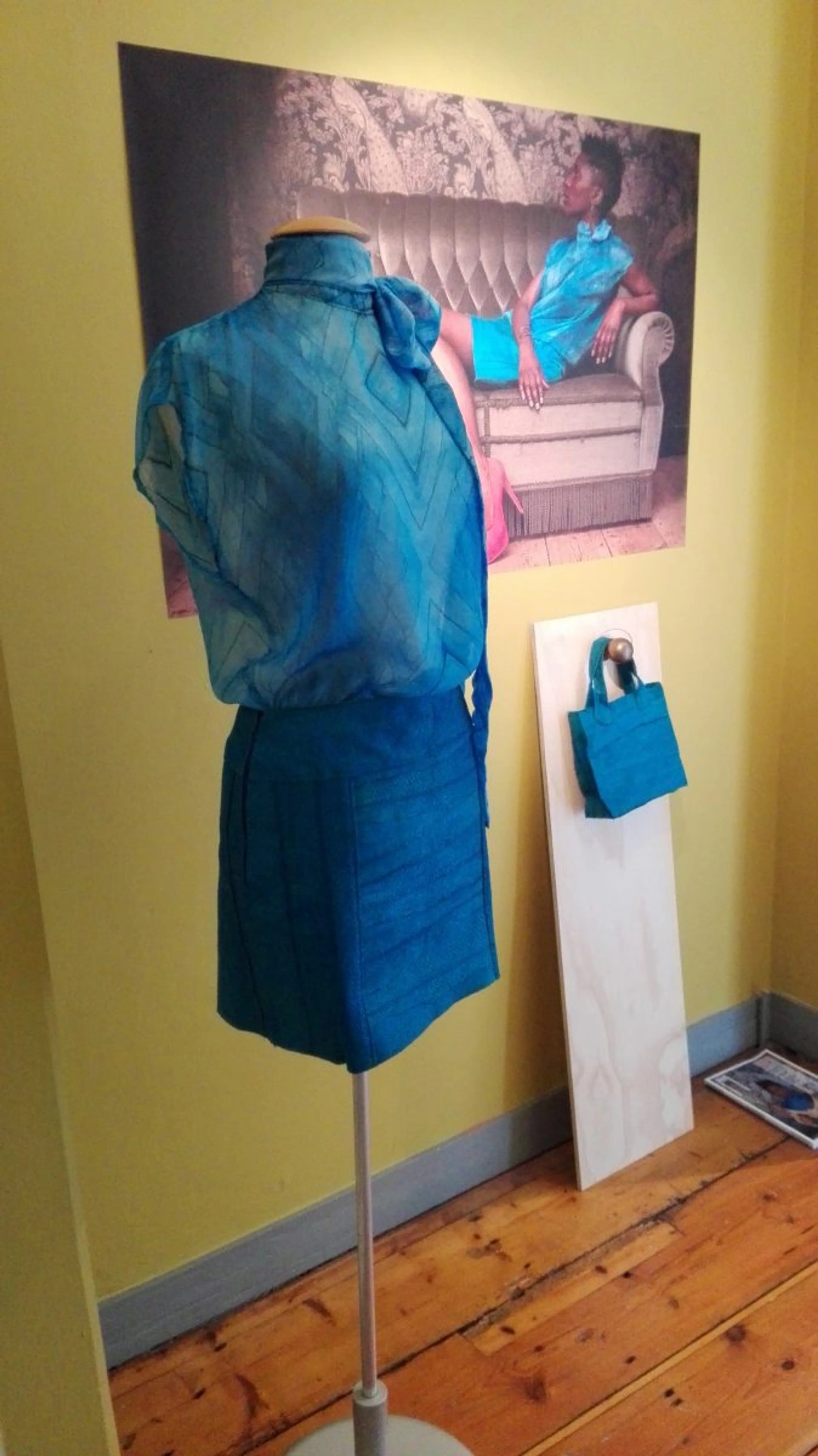 De tweede zaal gaat meer en meer over natuurbeleving en omgaan met de natuur. Daar vond ik het zeer verantwoorde (en draagbare) werk Waterzooi (rokje en tas van zalmhuid, restavfal bij visverwerking) van Map Renes.