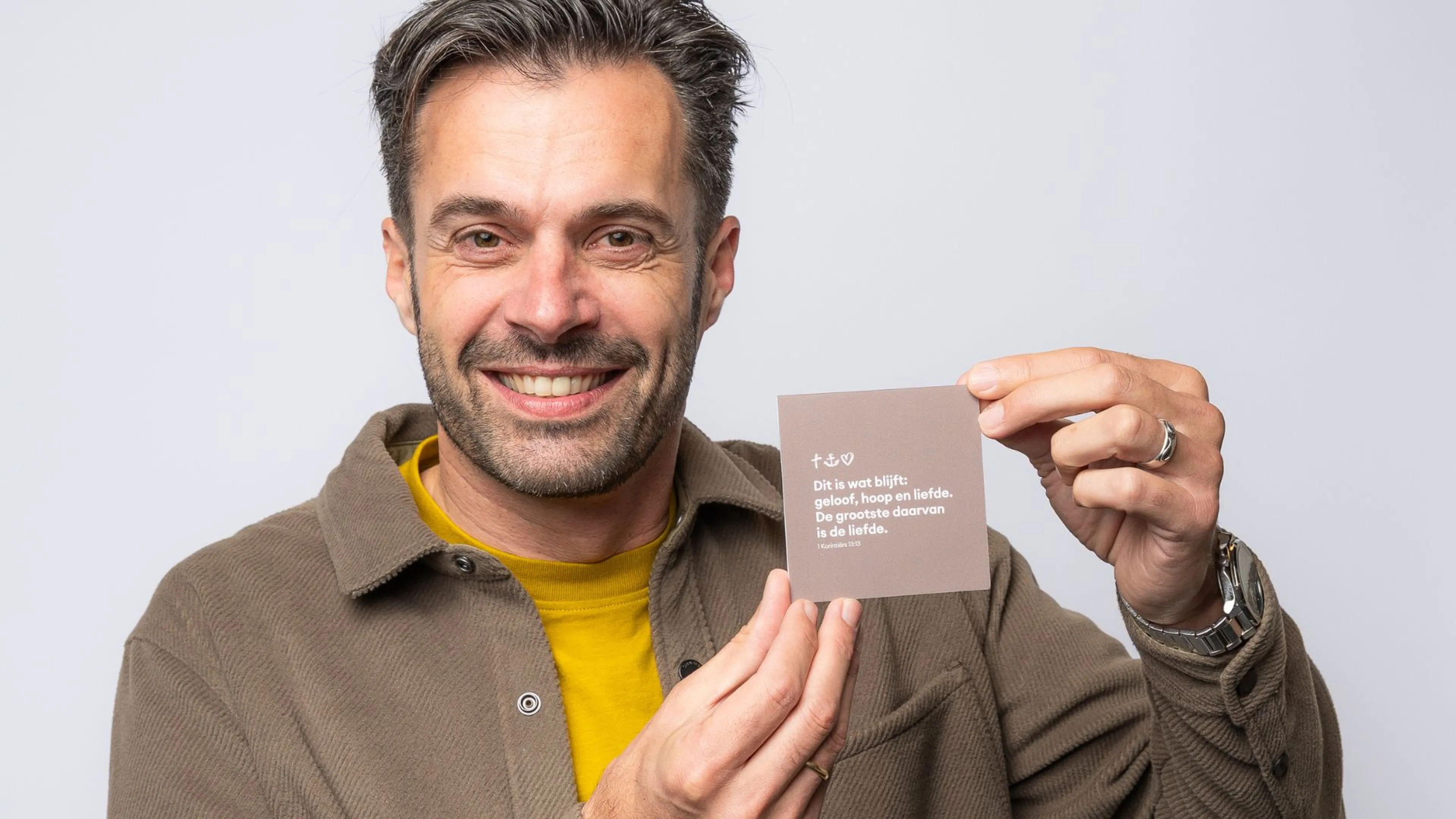"Voor mij is geloof jezelf toevertrouwen aan God; je Schepper. Hoop is wat Hij mij geeft. Een punt op de horizon waar ik naartoe werk en waardoor het leven zin heeft. En liefde? Dat is de samenvatting van de Bijbel in één woord."