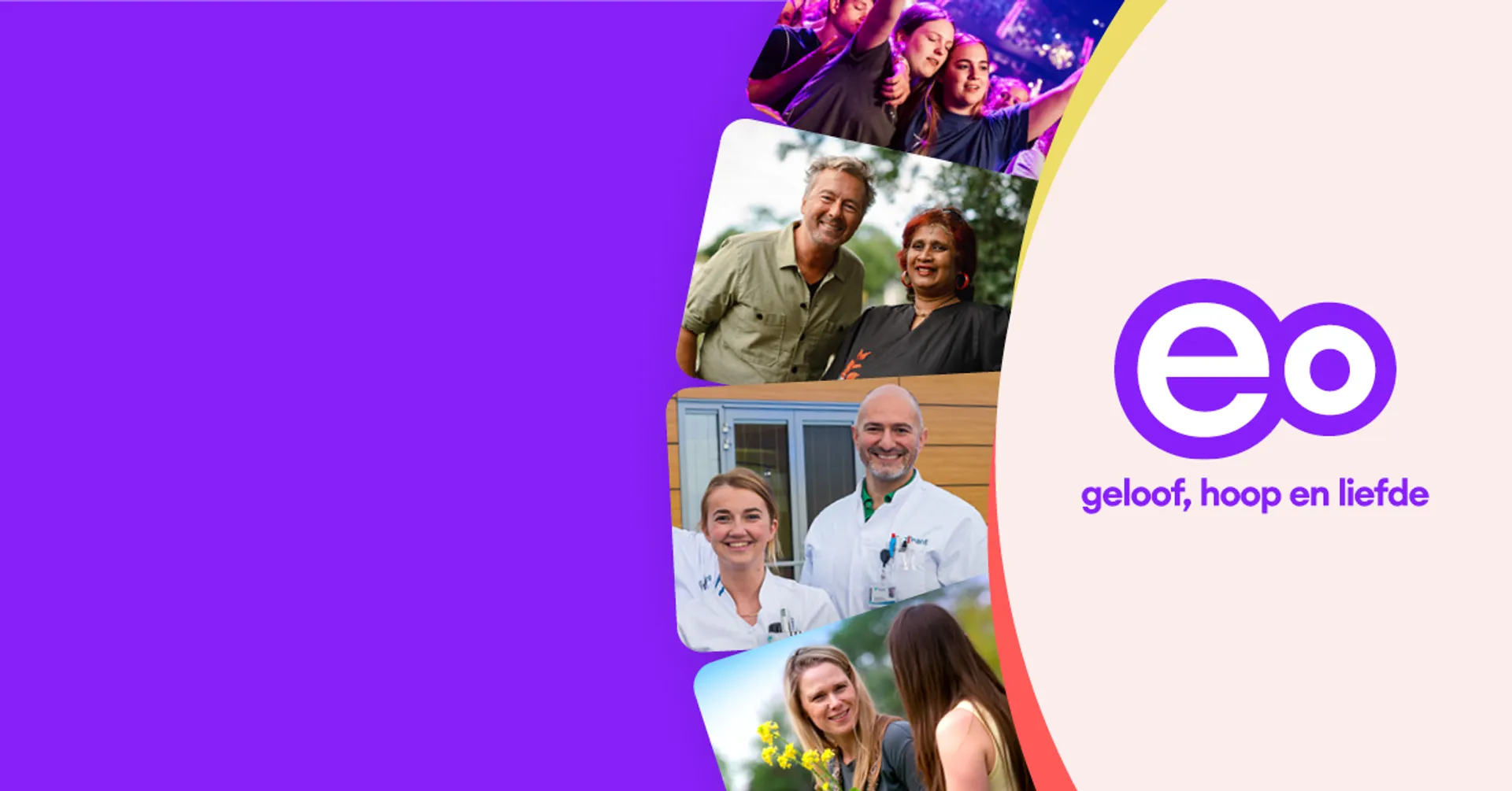 Welkom bij de EO. Hier delen we verhalen die raken. Verhalen van geloof, hoop en liefde. Juist in een tijd waar 'ik' vaak centraal staat, voel je bij ons: er is altijd een 'wij'. Want je bent niet alleen. Zo voelt verbonden zijn.
