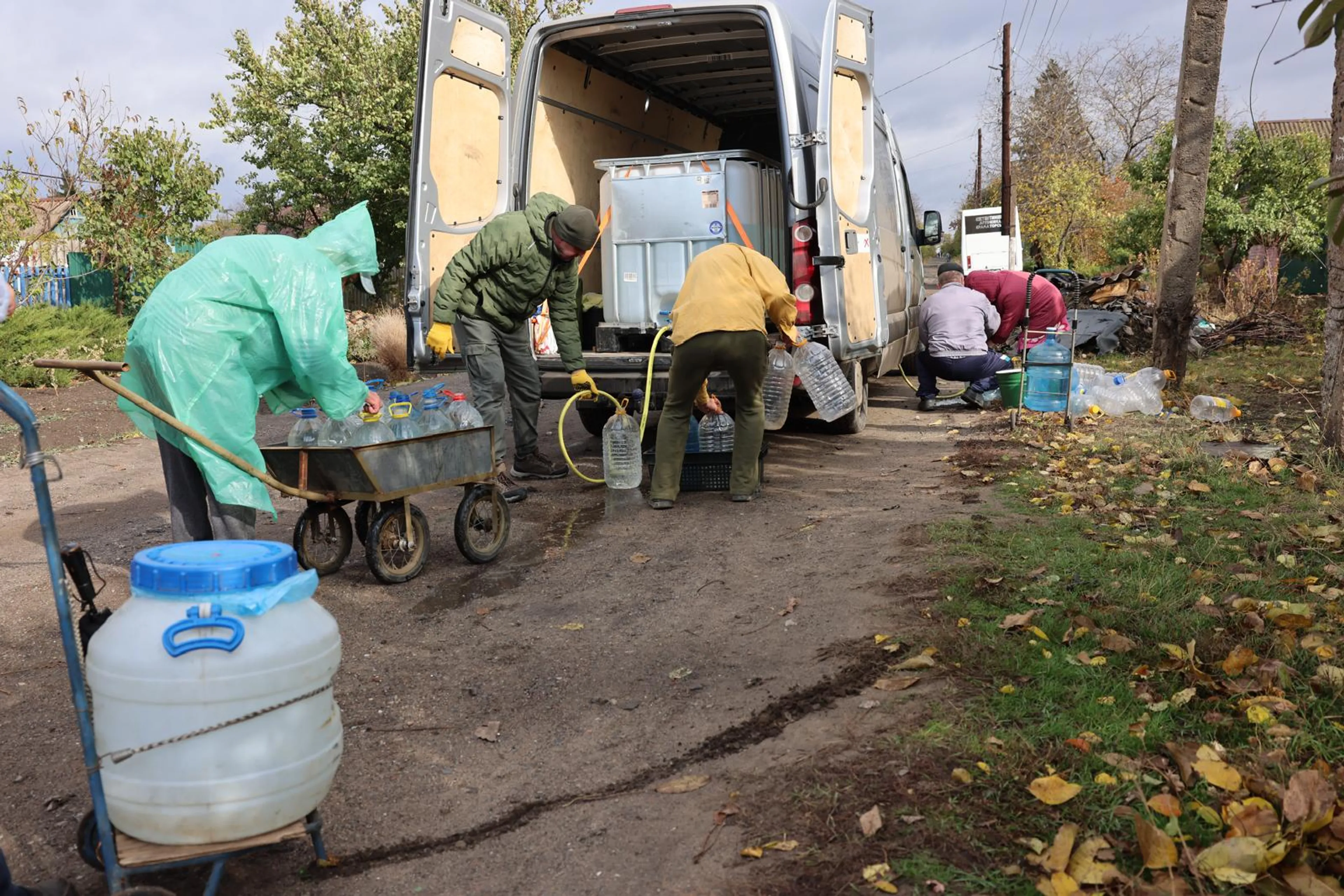 En toch blijft hij gaan, ritje na ritje. Iedere dag opnieuw, met gevaar voor eigen leven. “Ik kan niet anders,” zegt hij. “Ik kom hier vandaan, het zijn mijn mensen. Kwetsbare mensen die bijna niemand meer hebben.” En door gaat hij weer. En terwijl hij de volgende flessen vult, praat hij de bewoners bij over de laatste ontwikkelingen en vooral hoeveel dichterbij de Russische troepen gekomen zijn. Vlakbij klinken een paar harde explosies, die door de vrouwen met een spottende lach worden beantwoord. “De Russen groeten jullie, dit is hun manier om goedemorgen tegen jullie te zeggen!”