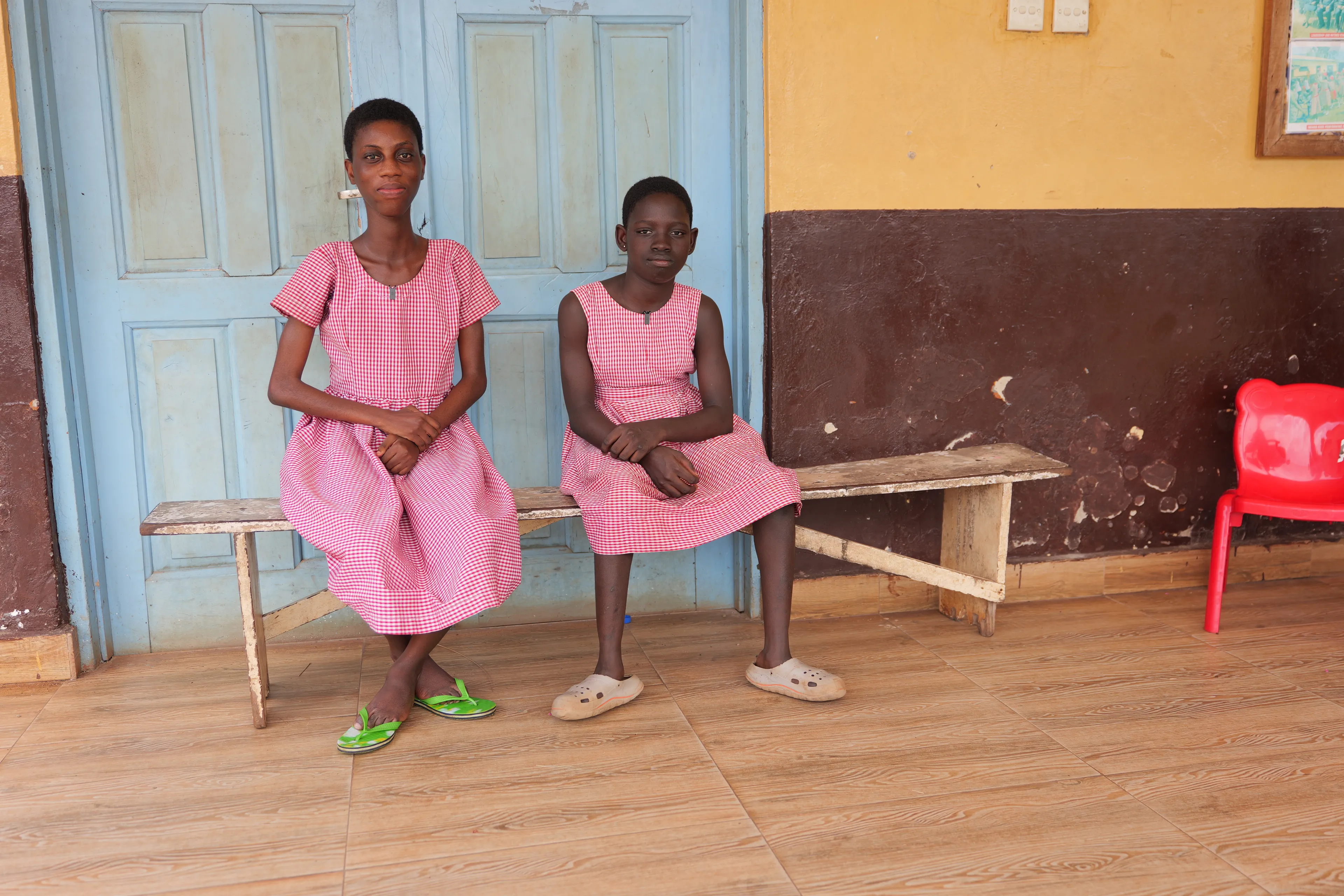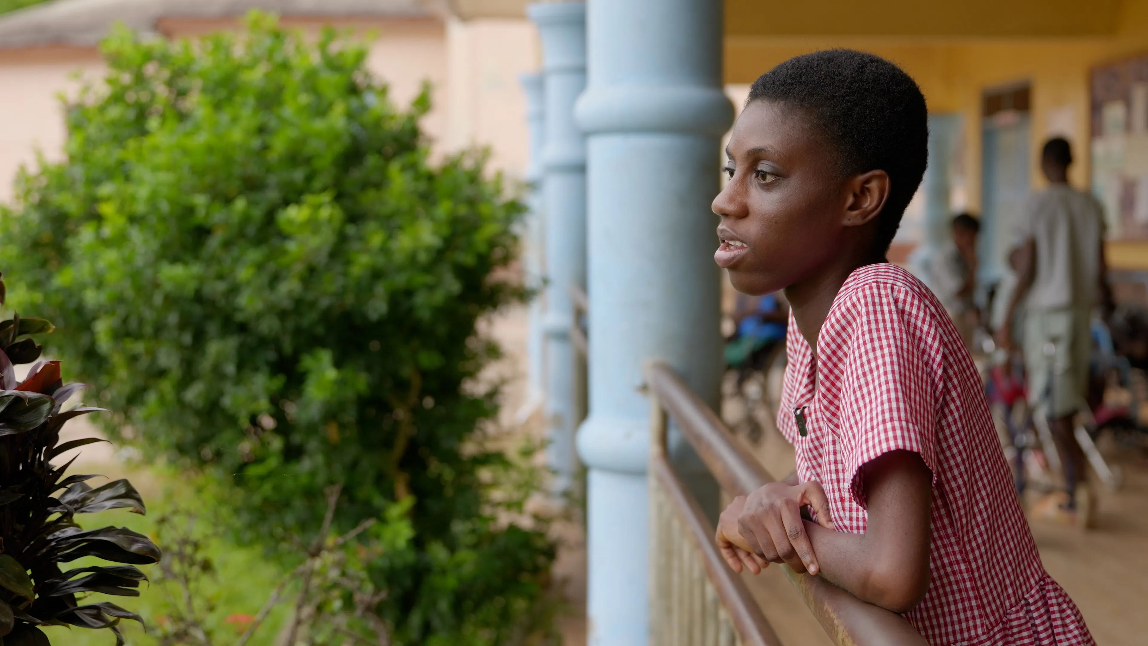 Op het binnenplein klinkt Afrikaanse muziek. De andere kinderen hangen lamlendig in de bank. Zelfs de verzorgende staf zit onderuitgezakt, uitgeput door de hitte. De enige die staat, is Beatrice. Wie goed kijkt, ziet haar heupen heen en weer wiegen op de maat van de muziek.