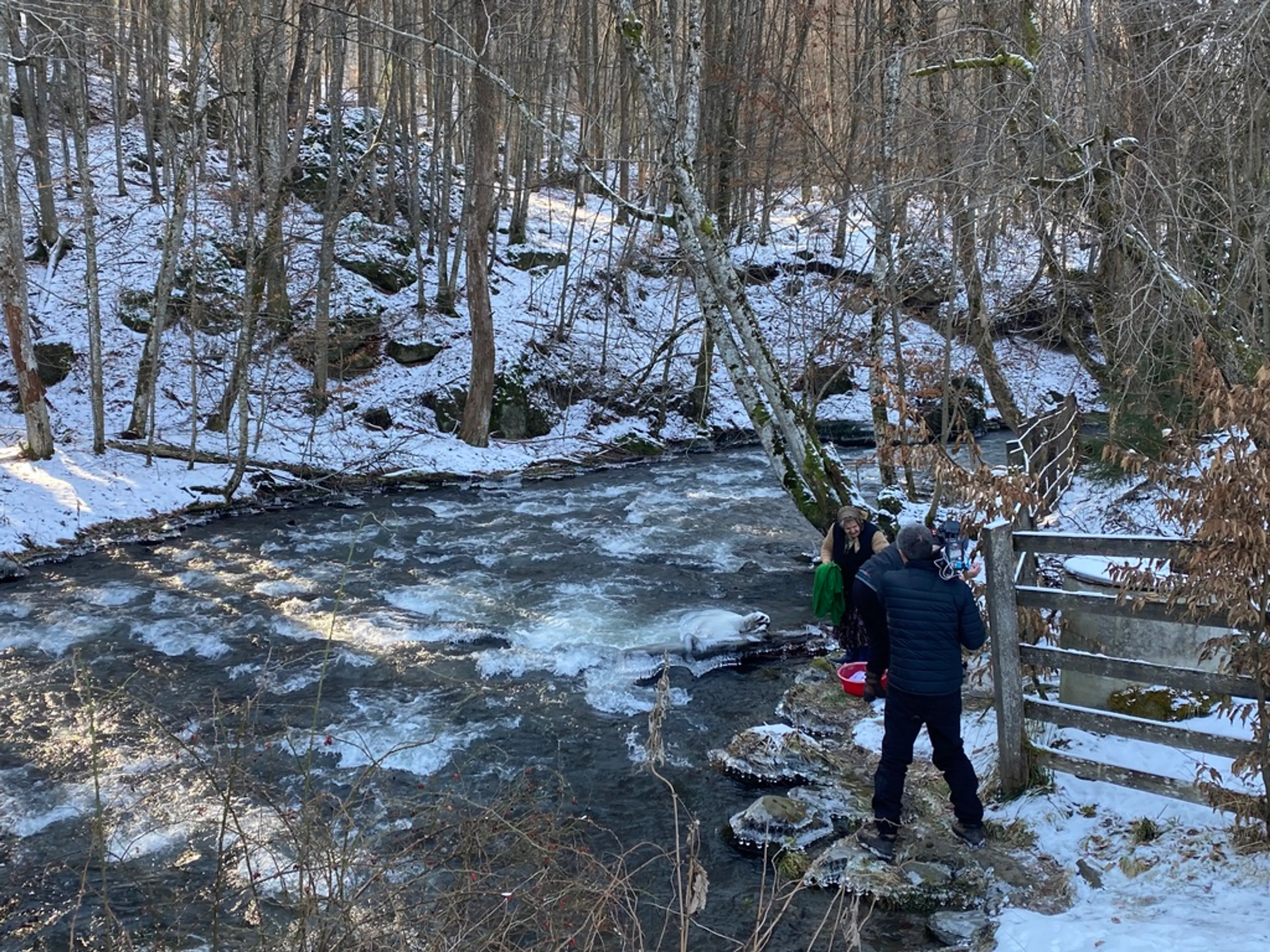 Glibberend gaat ze, voetje voor voetje, de heuvel af om bij het water te komen. Want het heeft behoorlijk gesneeuwd en er hangen ijspegels bij de waterkant. Ze vult de emmer in het extreem koude water en schuifelt de gladde berg op naar boven, met haar 80+ is dat een hele klim. En alsof dat nog niet genoeg is, hakt ze zelf de blokken hout voor haar kachel.