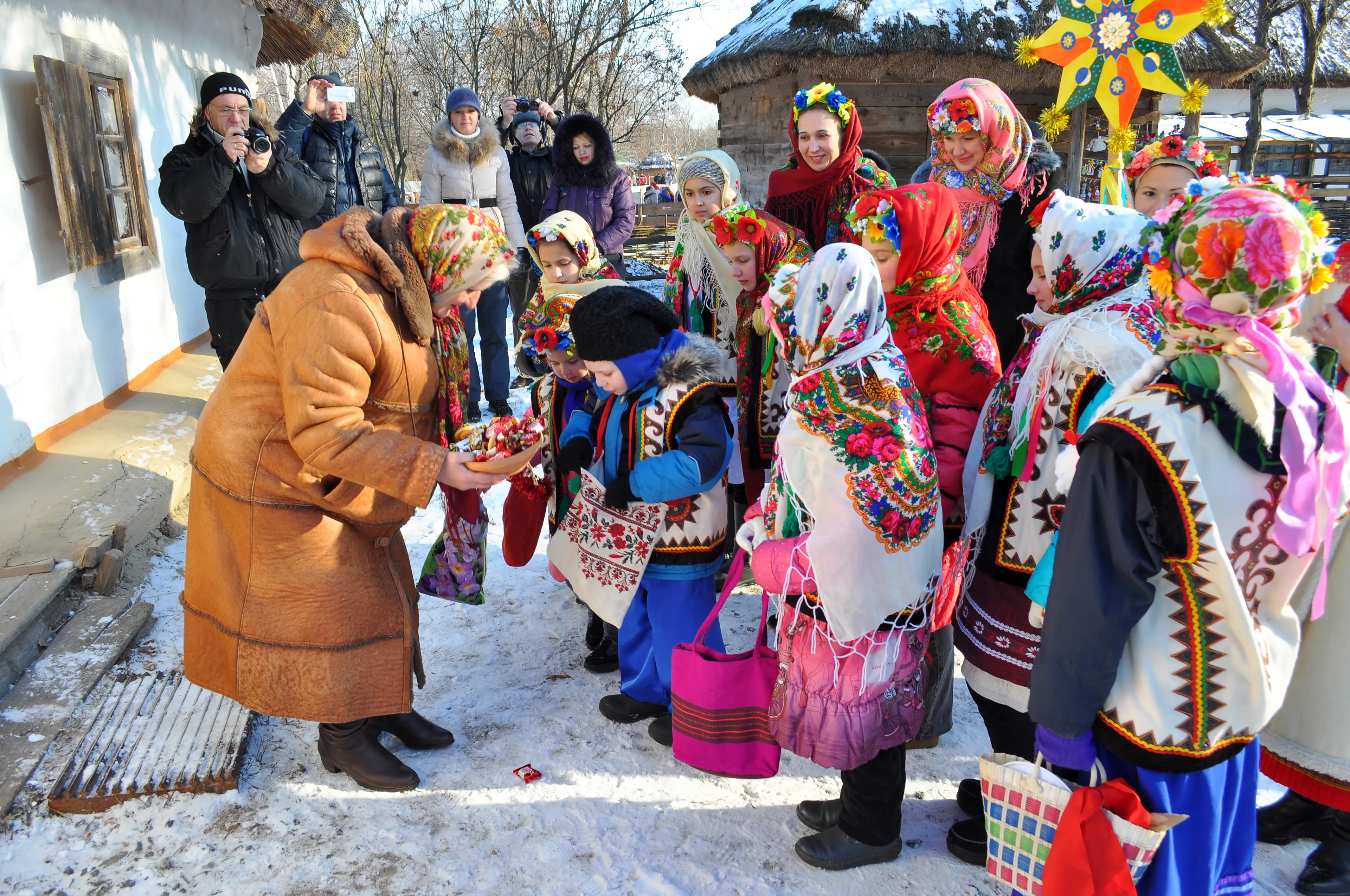 In Oekraïne gaan kinderen na de kerkdienst langs de deuren. Ze vragen volgens Oekraïense traditie: ‘Dozvol’te zakolyaduvaty?’ – oftewel: ‘Mag ik voor u zingen?’ Dan zingen ze opgewekte kerstliederen, wensen ze de mensen een gelukkig kerstfeest, en krijgen ze een bedankje in de vorm van snoep, biscuit, appels of mandarijnen.