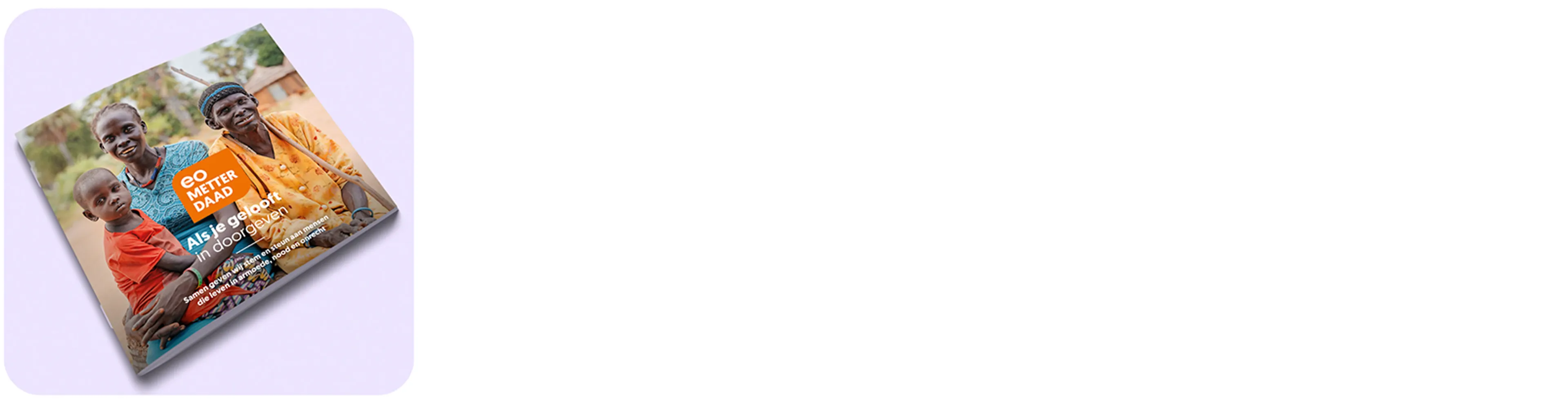 Ontdek in alle rust wat de mogelijkheden zijn om EO Metterdaad te steunen via een nalatenschap. Vraag onze gratis brochure aan. U krijgt inzicht én structuur om een weloverwogen keuze te maken die past bij uw leven en overtuiging.